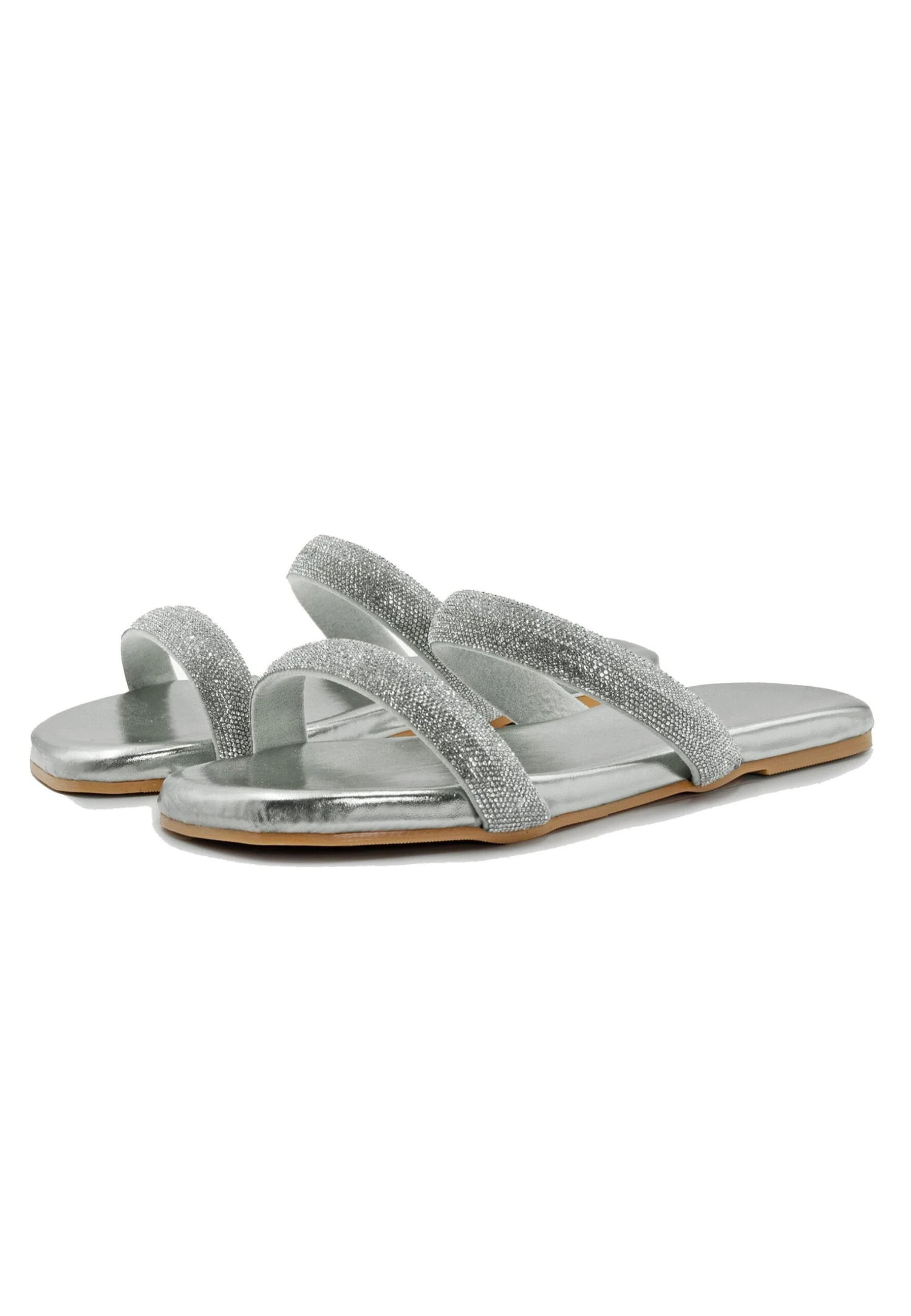 Yakirah With Thick Diamante Detailed – Muiltjes – Silver Metallic